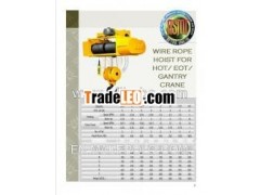 ELECTRIC WIRE ROPE HOIST FOR CRANESALIENT FEATURES OF WIRE ROPE HOIST :- CAPACITY 1 TO 25TONNES